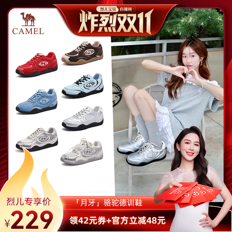骆驼女鞋百搭休闲板鞋复古德训鞋