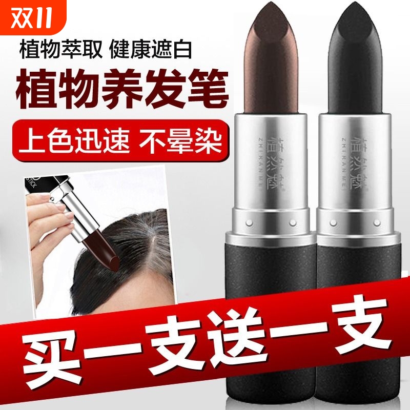染发笔口红式染发棒遮盖白发植物发际线一涂黑美发笔遮白植然魅