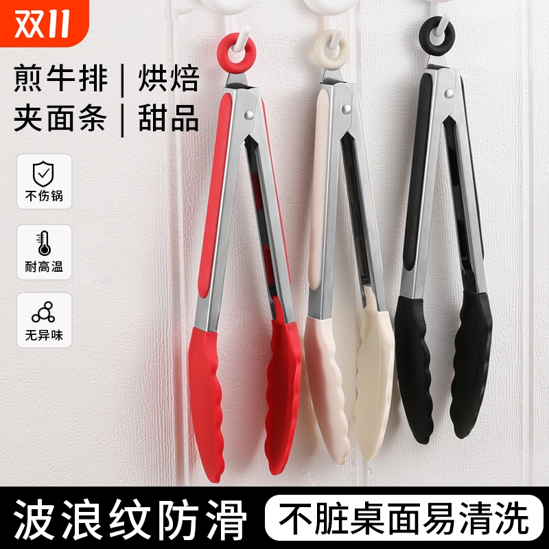 硅胶夹子耐高温厨房食物油炸不锈钢煎牛排夹炒菜烧烤专用食品夹