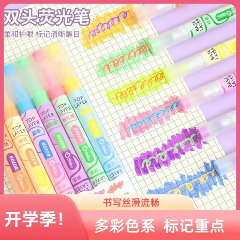 【下单立减50】 双头叠色荧光笔ins风学生手账笔记号笔_LX