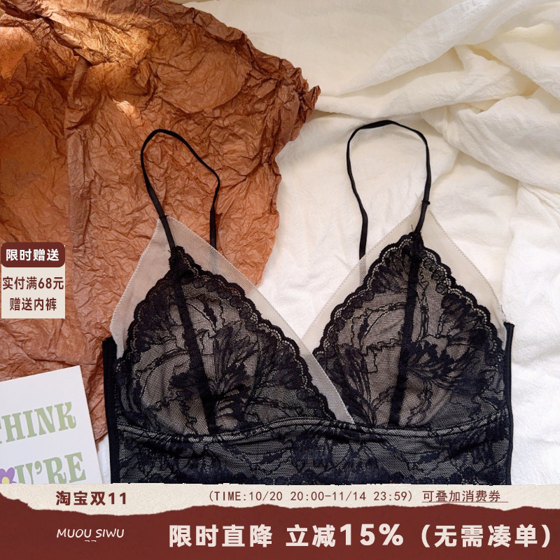 宫廷性感内衣女聚拢小胸纯欲风背心式吊带蕾丝鱼骨文胸可外穿内搭