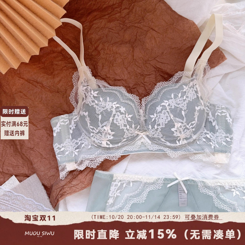 日系性感小碎花蕾丝内衣女小胸聚拢显大无钢圈纯欲风法式文胸套装
