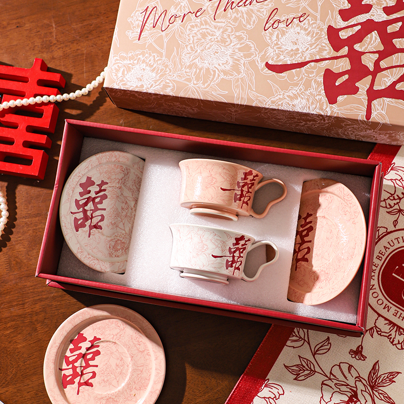 敬茶杯喜碗喜杯茶具陪嫁结婚红碗对碗筷套装新人改口杯茶碗新婚