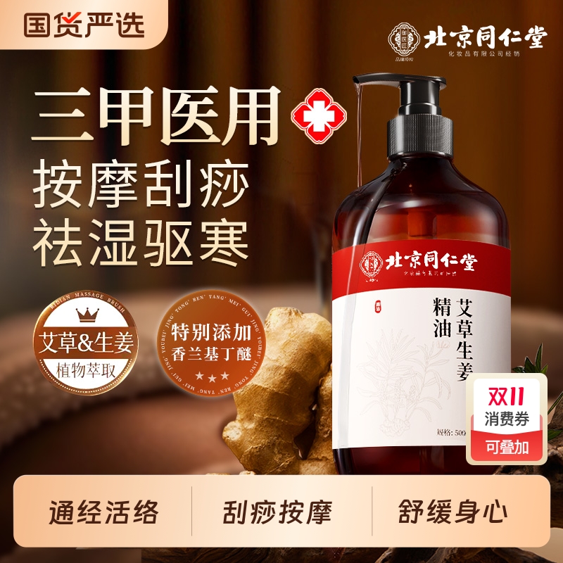 同仁堂生姜艾草按摩精油全身体通经络发热刮痧推拿植物油草本姜油