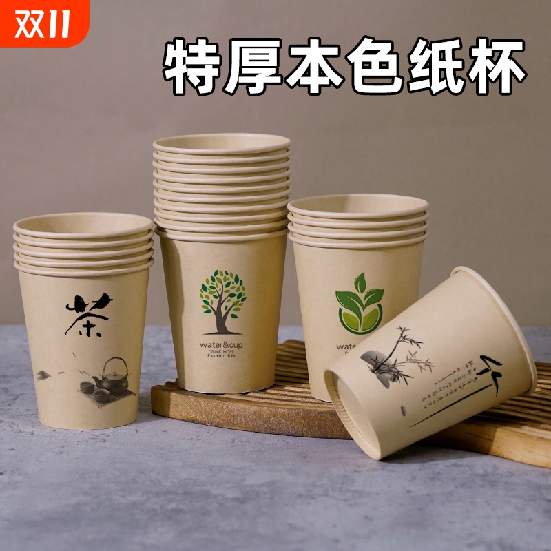 一次性杯子纸杯本色家用商用办公茶水杯子冷热饮奶茶杯整箱批发