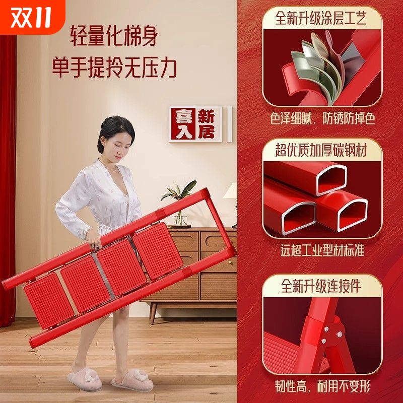 乔迁之喜梯子家用折叠室内花架梯多功能加厚人字梯便携扶手小梯凳