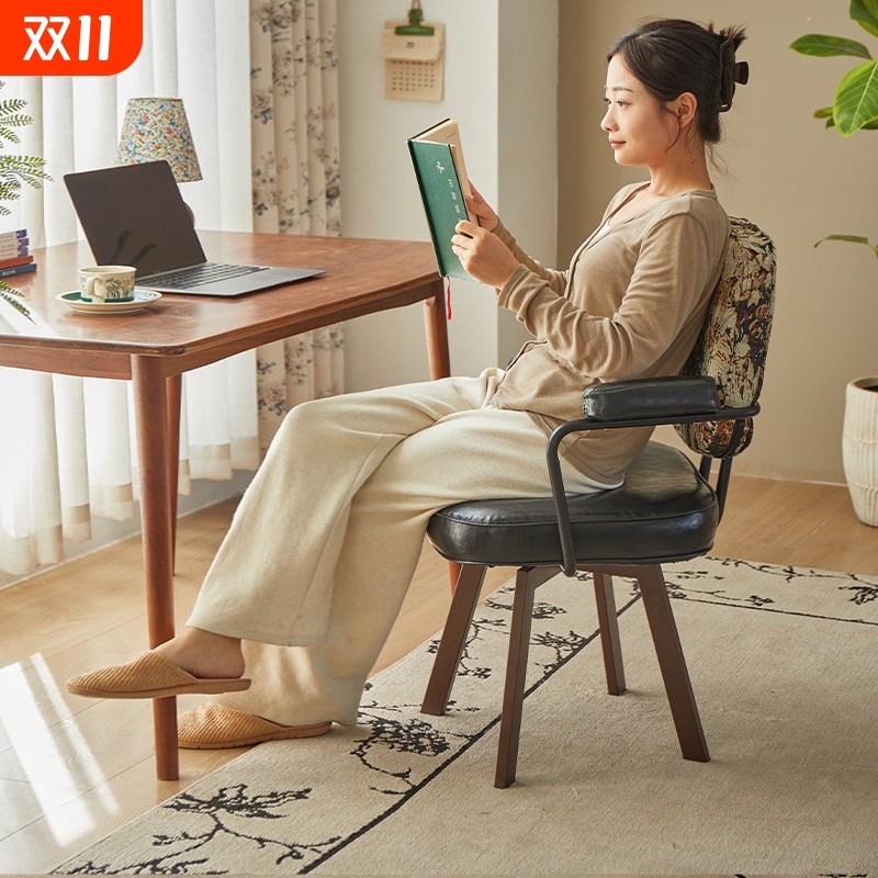 卧室电脑椅家用复古转椅办公椅子靠背椅舒适久坐书房旋转座椅扶手