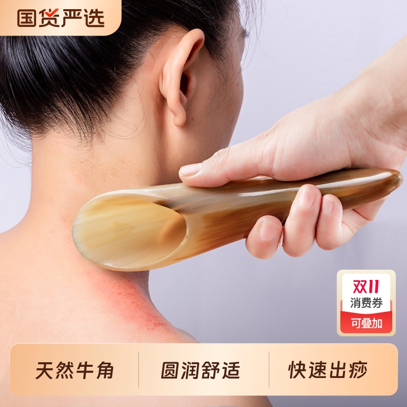 内蒙古天然牛角刮痧筒背部疏通按摩板刮痧脸部美容全身通用拨筋棒