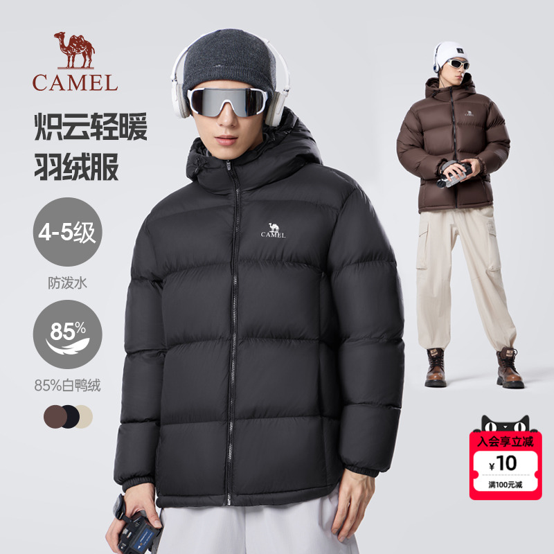 骆驼火山PRO鹅绒服男秋冬季2025新款男装连帽情侣面包羽绒服外