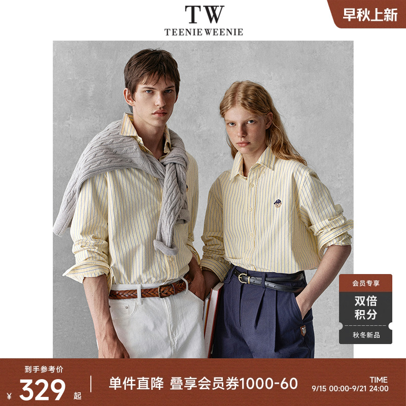 Teenie Weenie小熊男装休闲日常宽松牛津纺条纹提花翻领