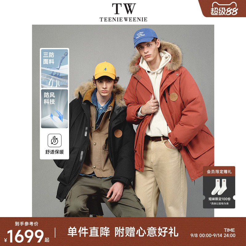 Teenie Weenie小熊男装户外风三防可拆卸貉子毛轻盈派克