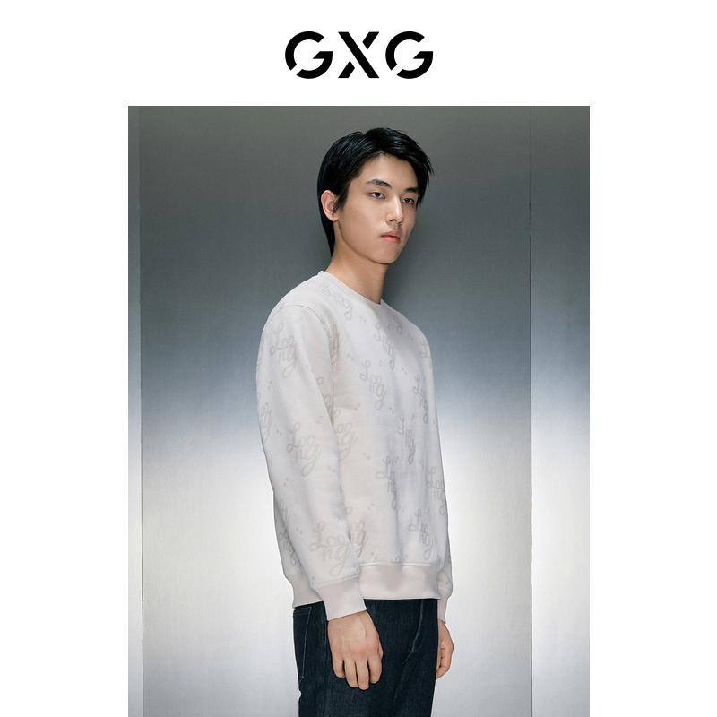 GXG男装 浅咖顺色印花圆领卫衣 2023冬季品GEX13129