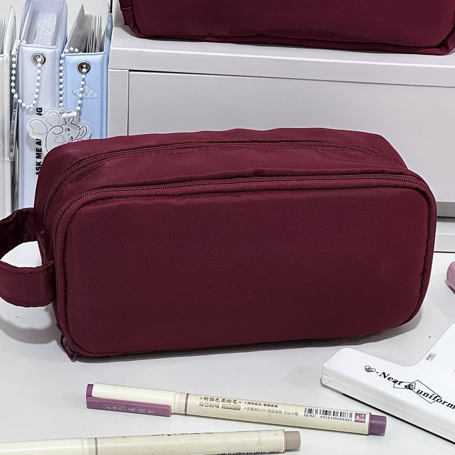 简约多功能撞色大容量笔袋手提高颜值吧唧痛包文具收纳袋文具袋