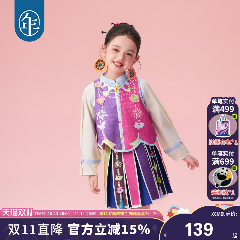 年衣童装女童马甲秋装新款女孩汉服唐装马夹背心上衣半身裙套装