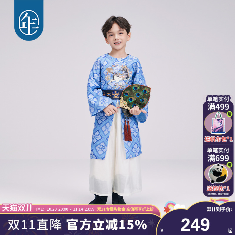 年衣童装儿童汉服套装男童秋季新款改良唐装长袍灯笼裤演出服