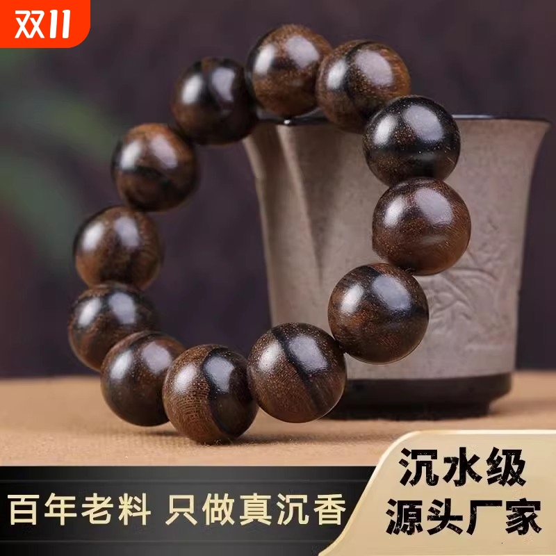 保真芽庄奇楠沉香手串男士高端熟结老料沉香木佛珠手链女九分沉水