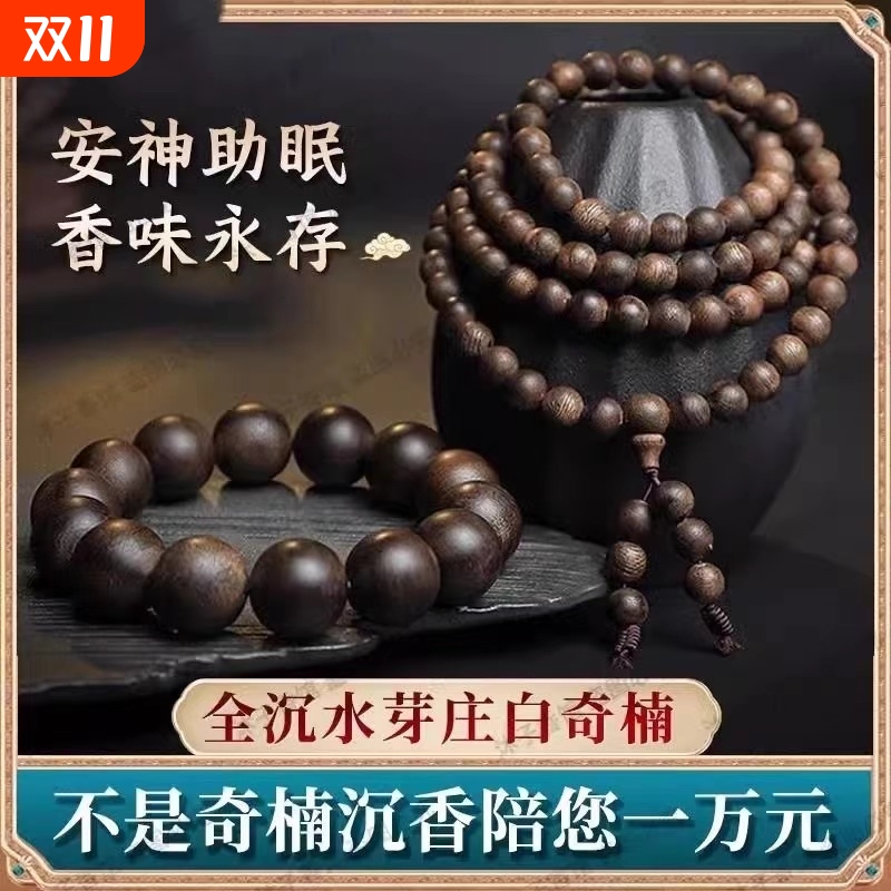 天然芽庄奇楠沉香手串全沉水级108颗棋楠佛珠男女文玩手链沉香木