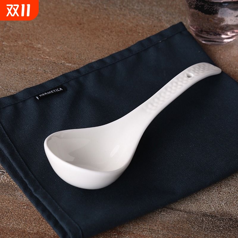 汤勺陶瓷家用大勺子大汤勺瓷勺子长柄勺大号陶瓷粥勺稀饭勺火锅勺