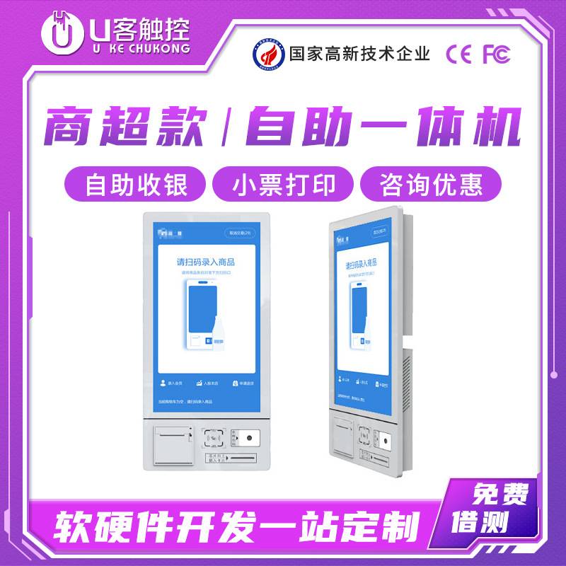 21.5寸自助收银机超市便利店电容屏触摸打印小票自助终端一体机