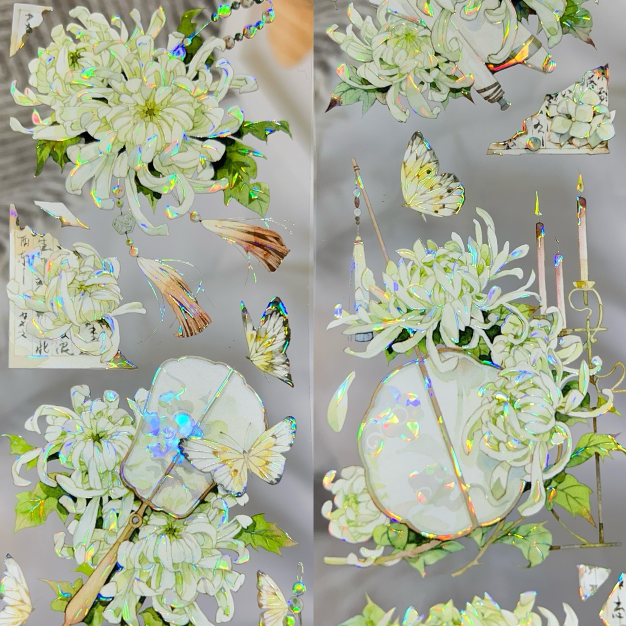 没尾巴的猫分装手账胶带东篱采菊山茶暮雪血色香雪兰雪之华花朵
