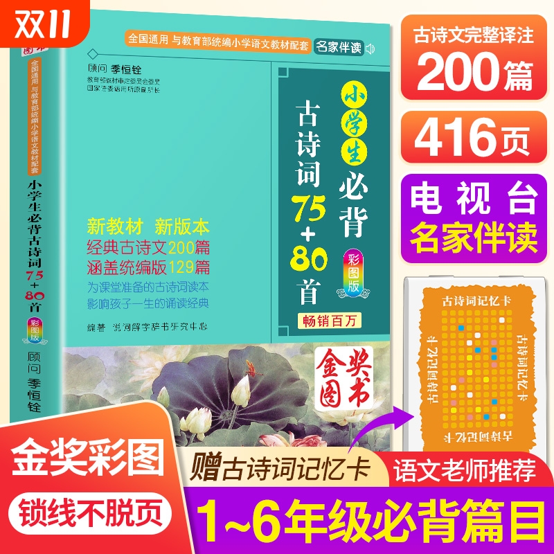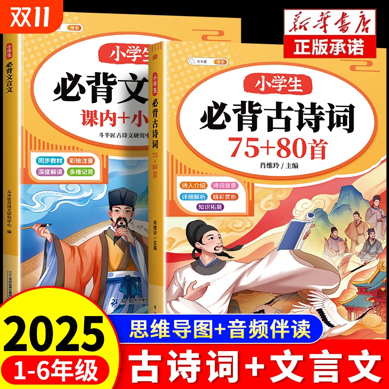 2025小学生必背古诗词75首+80首必备小学生人教版一到六年级