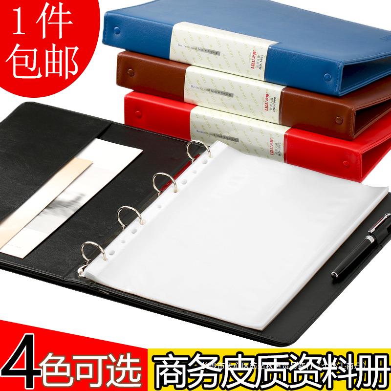 资料册a4插页60页多层整理册活A页100页皮面打孔4孔夹办公用