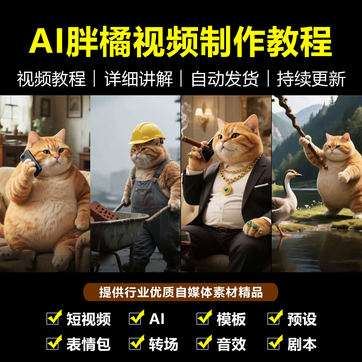 抖音快手AI胖橘猫剧情类新制作教程可灵即梦ai短视频变现项目