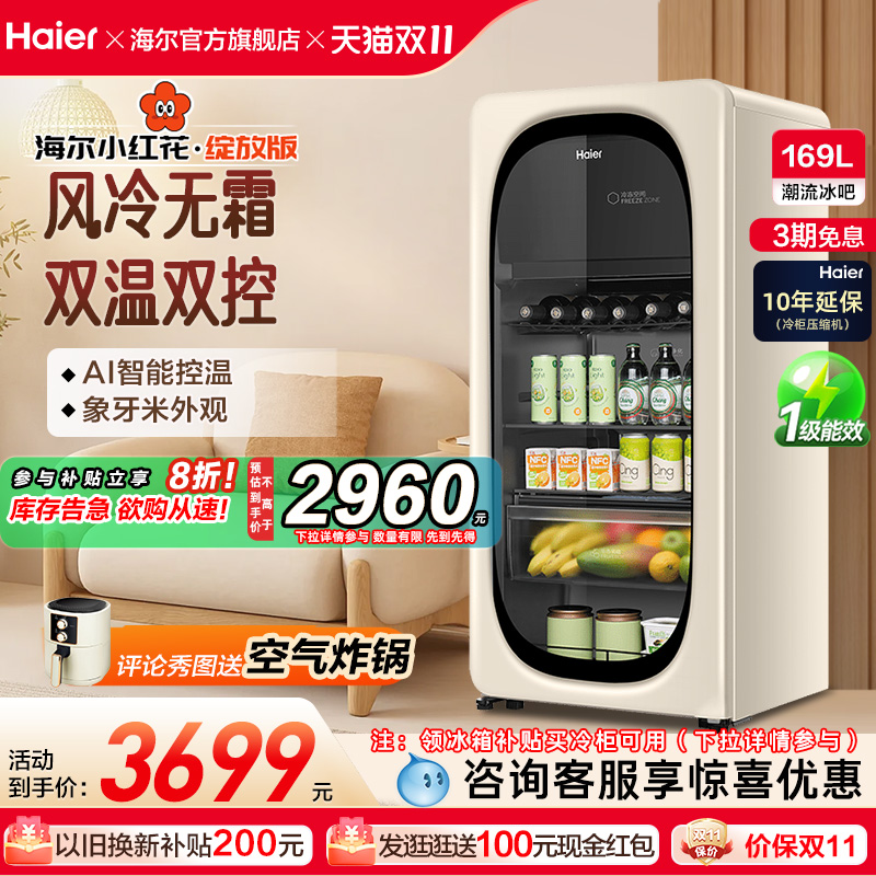 海尔小红花套系169升元气冰吧小型冷藏保鲜家用茶叶饮料柜冰箱
