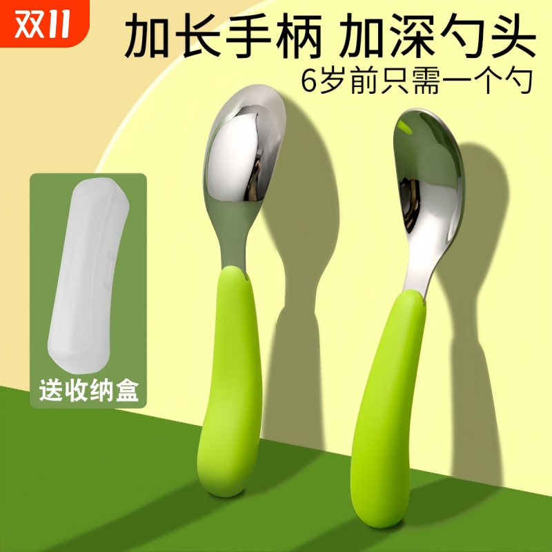 婴儿勺子宝宝学吃训练勺自主进食辅食叉勺316L不锈钢儿童吃饭餐具