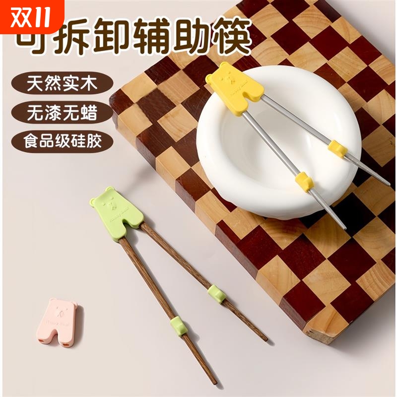 儿童筷子宝宝学木筷不锈钢防滑学习筷硅胶餐具鸡翅木练习训练辅助