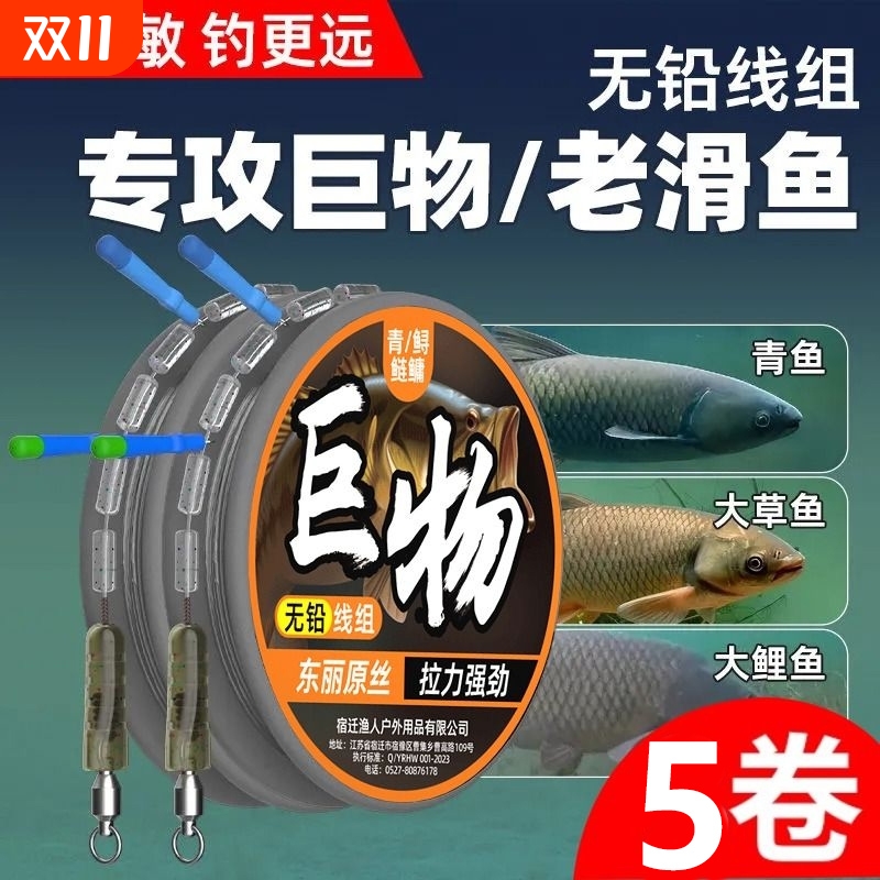 无铅大物线组鲢鳙巨物主线组成品绑好鱼线PE加固青草鲤专用跑铅