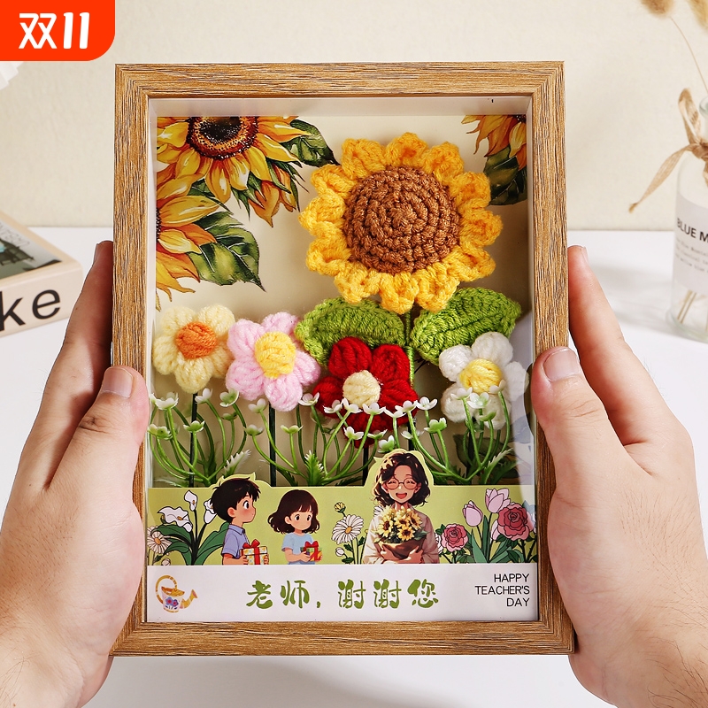 手工钩织成品毛线向日葵针织永生花束摆件教师节相框画框编织实用
