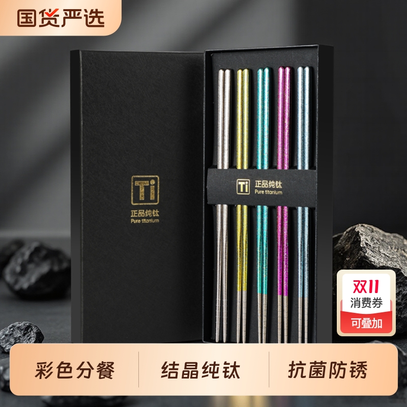 结晶纯钛筷子家用高端抗菌防霉一人一筷专用食品接触级送礼礼盒装