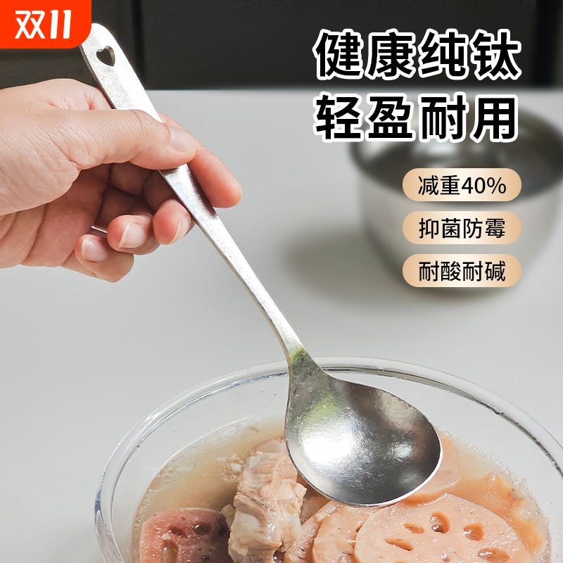 食品级家用纯钛冰花结晶汤勺户外便携餐具汤勺北欧高档长柄汤勺