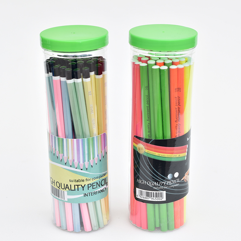 原装2B铅笔48支桶装六角杆圆杆木杆学生书写绘图绘画考试铅笔