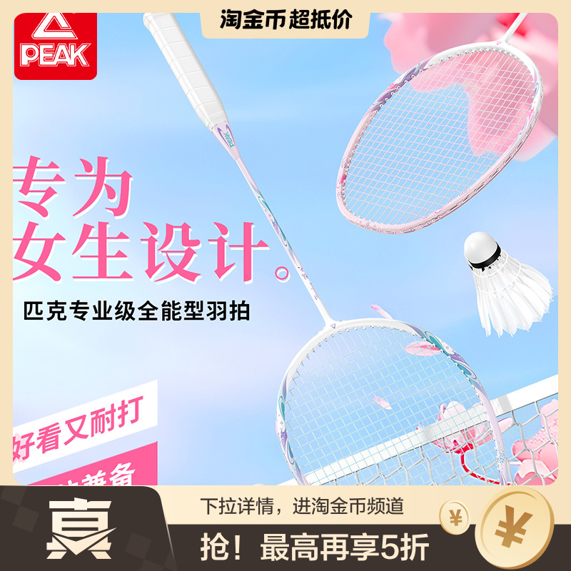 匹克正品桃夭羽毛球拍碳素纤维单拍双拍学生男女耐打超轻训练球拍