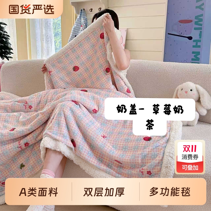 毛毯加厚牛奶绒羊羔绒可爱风沙发毯子午睡小毯子床上盖毯双面加绒