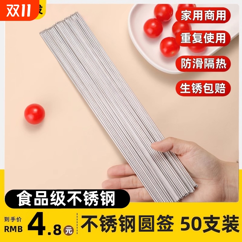 烧烤签A1vq0-圆签不锈钢针烤羊肉牛肉串铁签子配件烤肉户外野