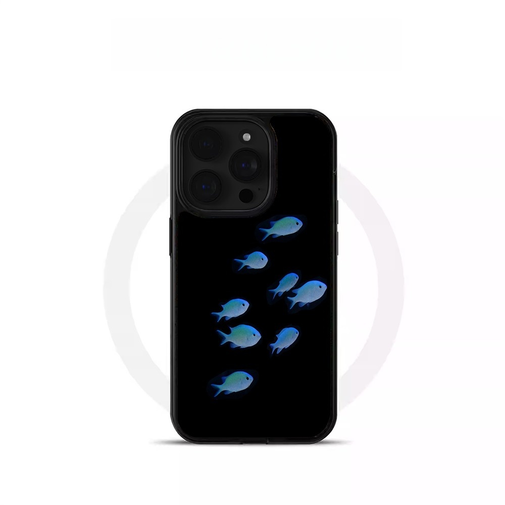 蓝色深海鱼群手机壳适用苹果17Air16promax小米15情侣