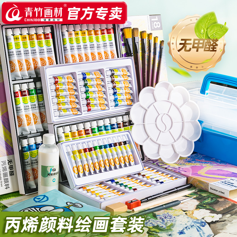 青竹丙烯颜料12色儿童初学者套装