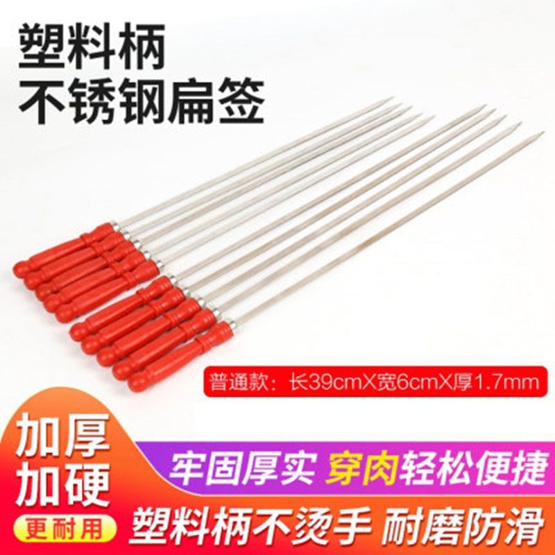 语晴不锈钢烧烤签子针羊肉串扁签铁钎烤签塑料把手加宽厚水浒烤肉