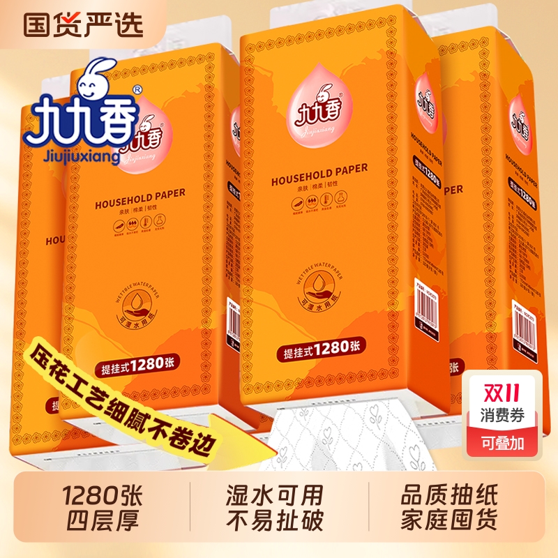 柔恣5层加厚1200张悬挂式抽纸餐巾纸面巾纸家用实惠装手提装纸巾