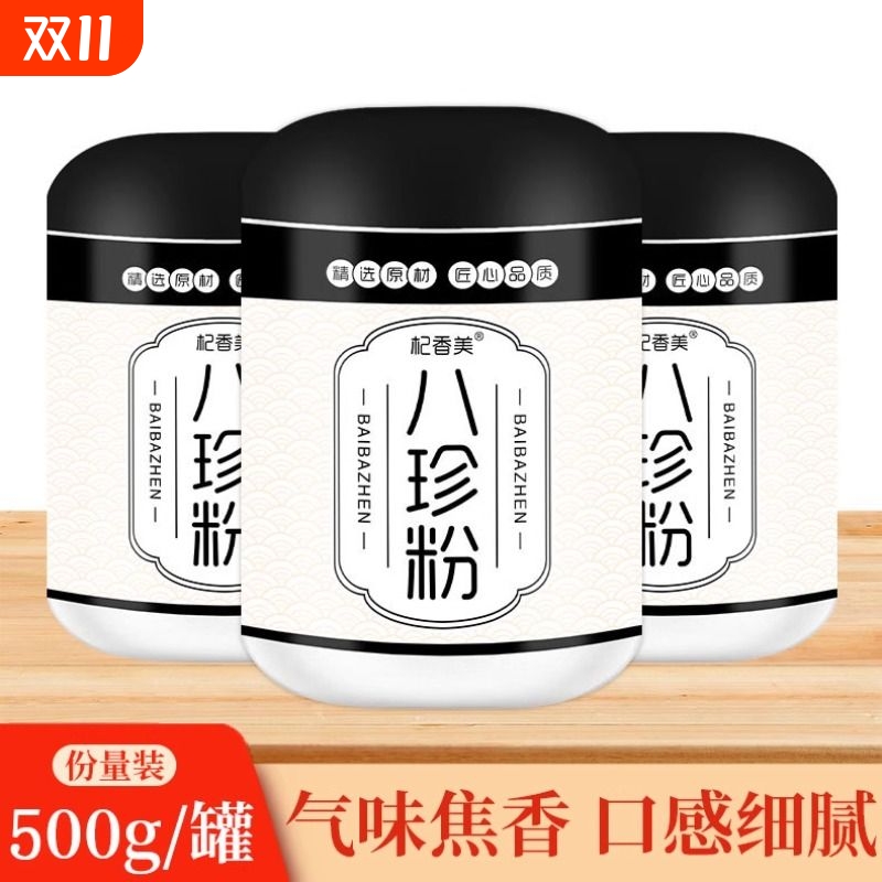 现磨熟脾胃八珍粉芡实莲子黑米红枣黑芝麻黑小米茯苓薏米冲泡即食