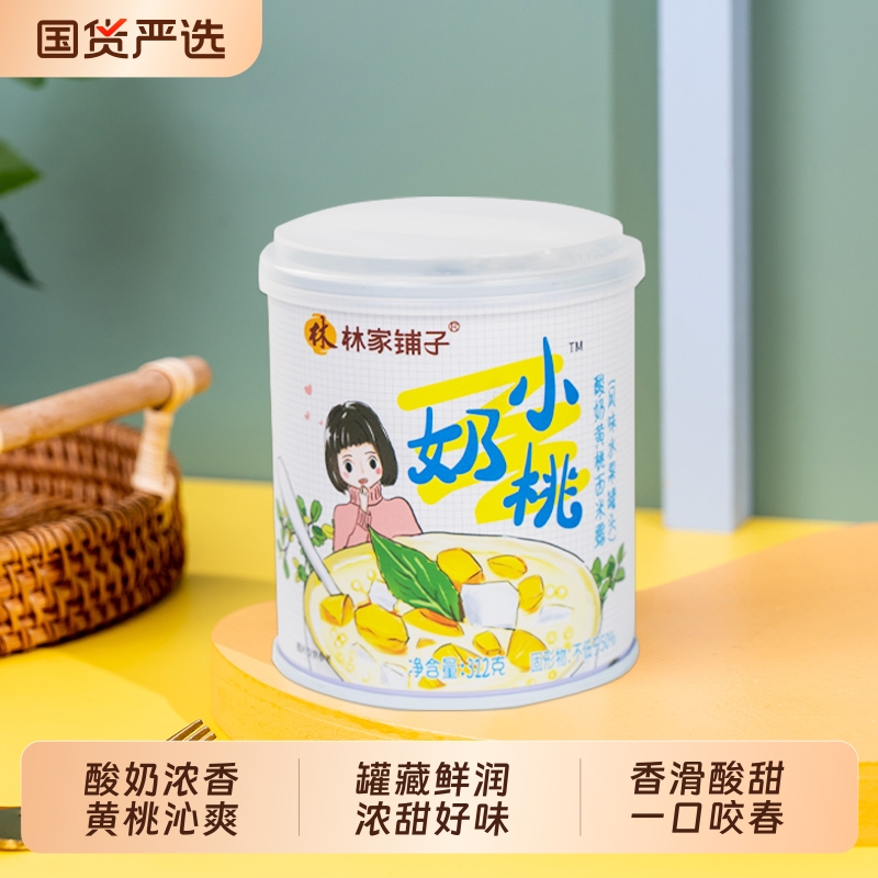林家铺子酸奶黄桃西米露312g*5小奶桃罐头零食甜品罐装奶香整箱