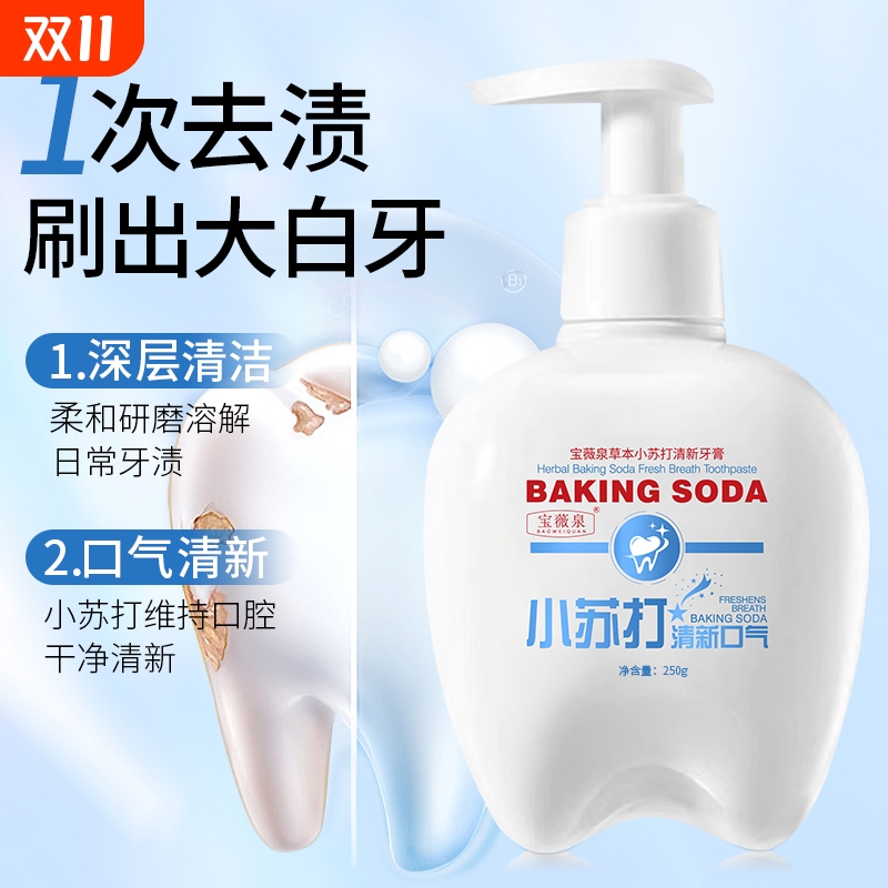 小苏打牙膏牙结石专用去黄去口臭美白益生菌清防蛀烟渍清新牙齿