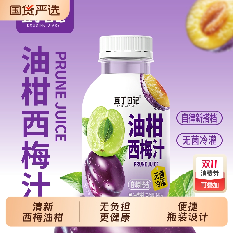 豆丁日记【油柑西梅饮】0蔗糖含膳食纤维西梅原浆复合果蔬汁245m