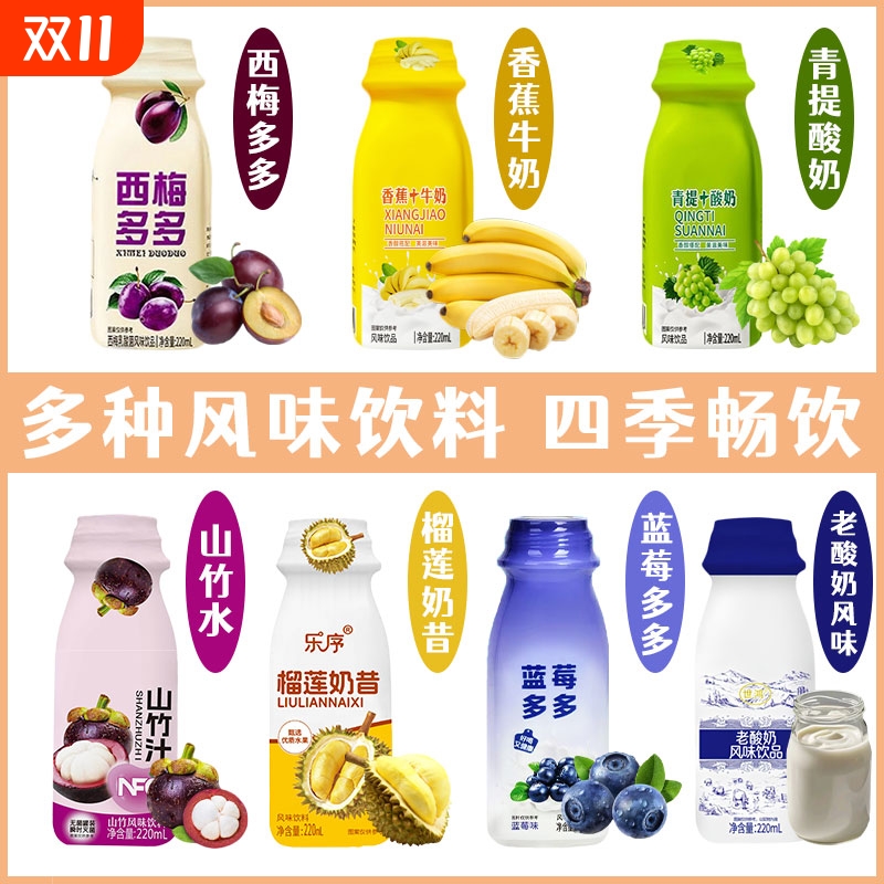 饮料青提西梅香蕉榴莲蓝莓山竹汁220ML*10瓶老酸奶风味饮品膳