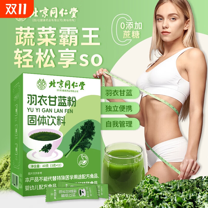 北京同仁堂纯羽衣甘蓝粉果蔬菜粉高膳食纤维冲饮青汁饱腹代餐正品
