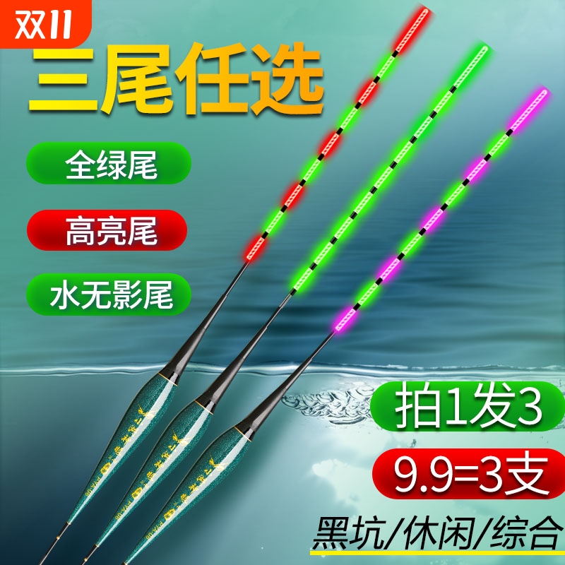 日夜两用尾咬钩变色电子夜光漂高灵敏水无影冷光尾浮漂不变色软尾