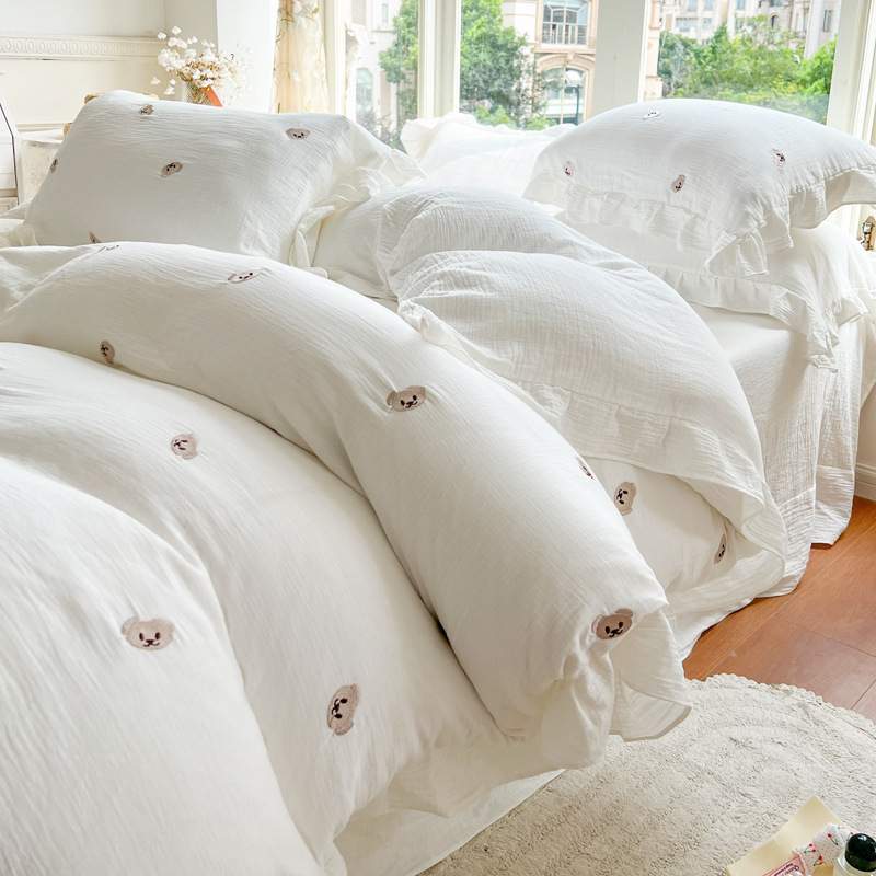2023新款皱皱纱荷叶边刺绣工艺款四件套米诺米诺简约混搭薄款
